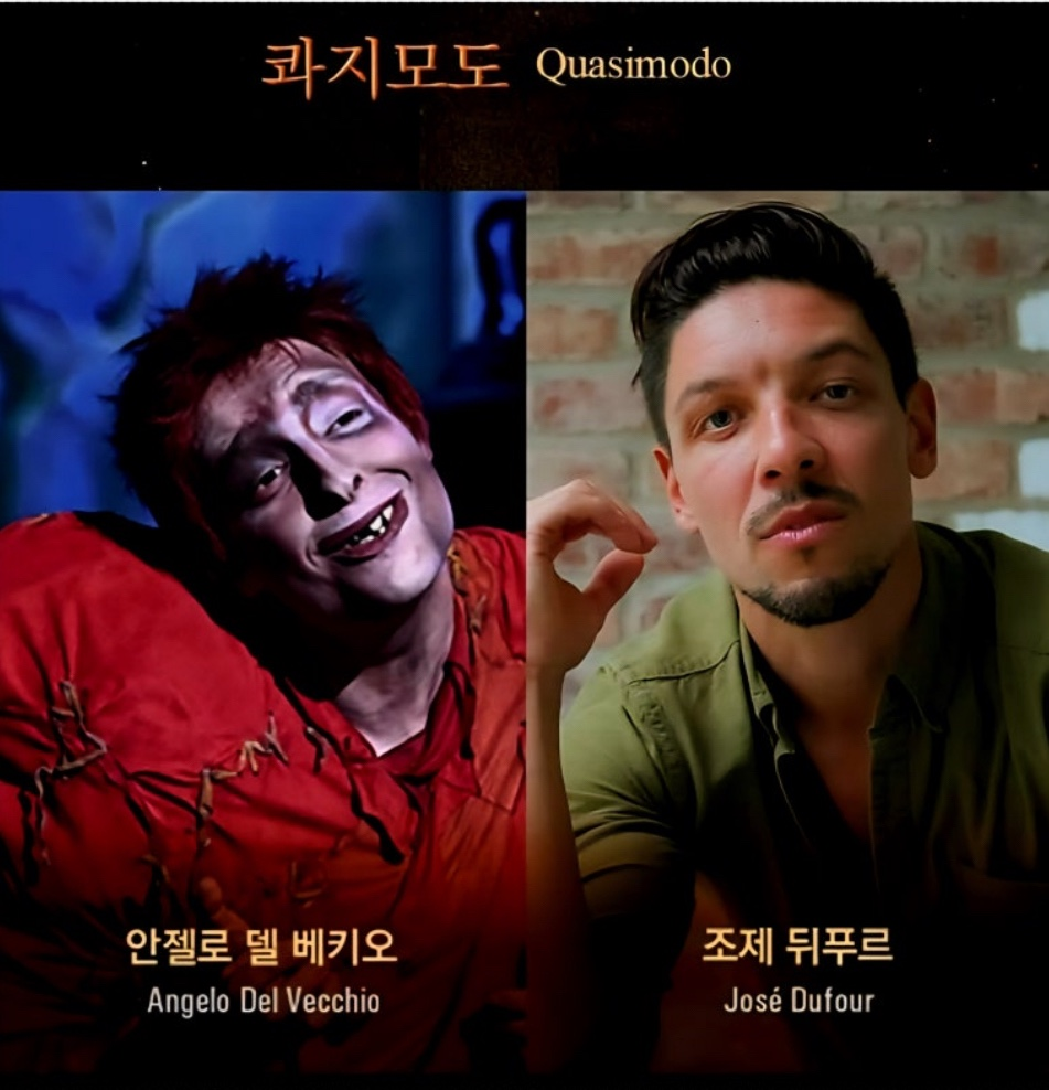 • 콰지모도 (Quasimodo) : 추한 외모 뒤에 순수한 영혼을 지닌 종지기, 감성적이고 진실된 내면 연기로 감동을 전함